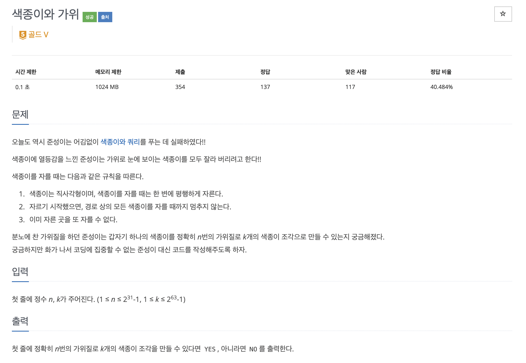 가로, 세로 갯수가 같을 때 조각의 개수가 가장 많이 나오게 되어서 이분탐색의 right 값을 N/2로 시작했다.